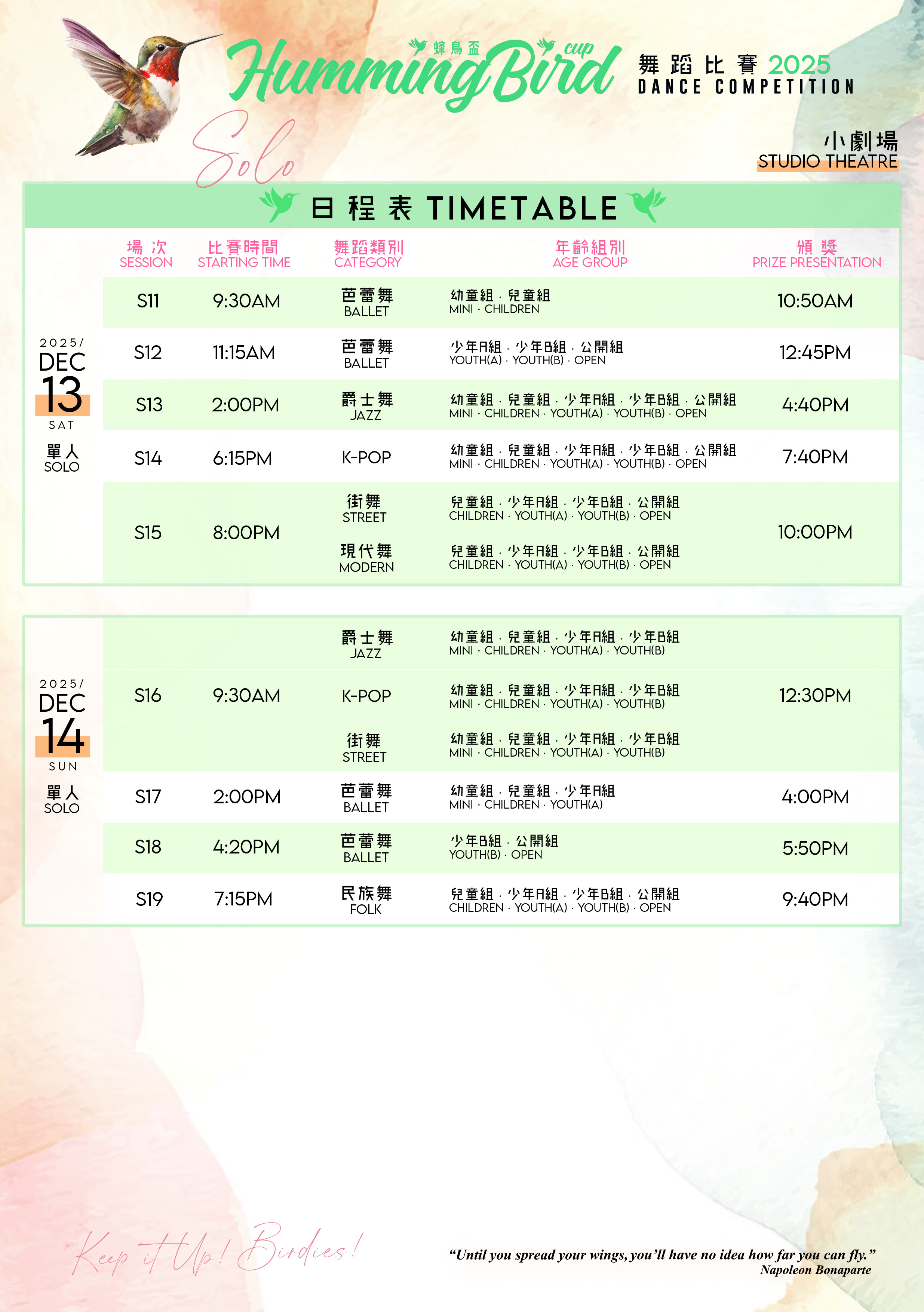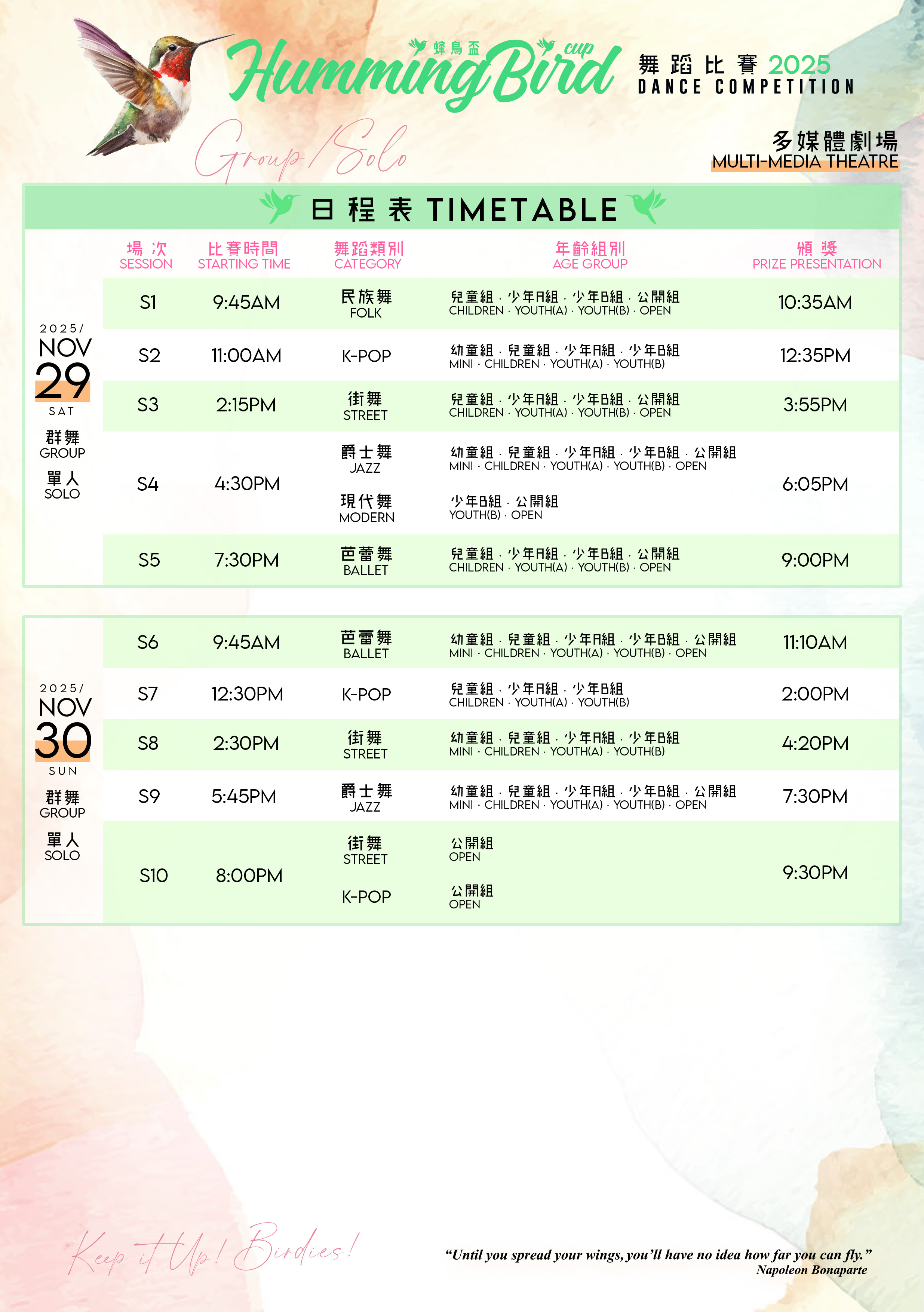 蜂鳥盃舞蹈比賽 HUMMINGBIRD CUP DANCE COMPETITION 2025